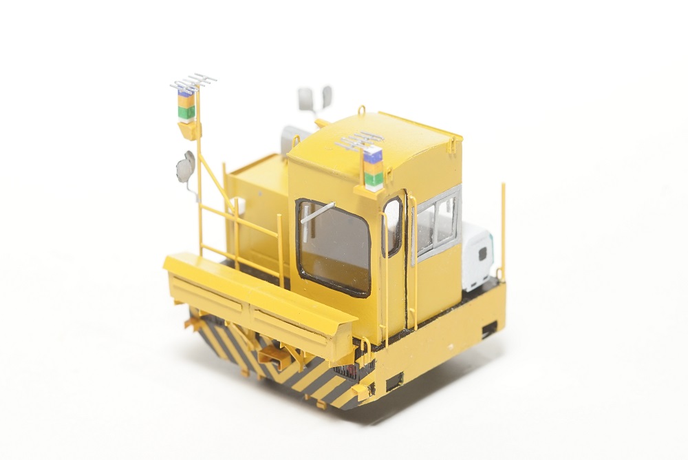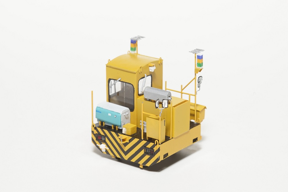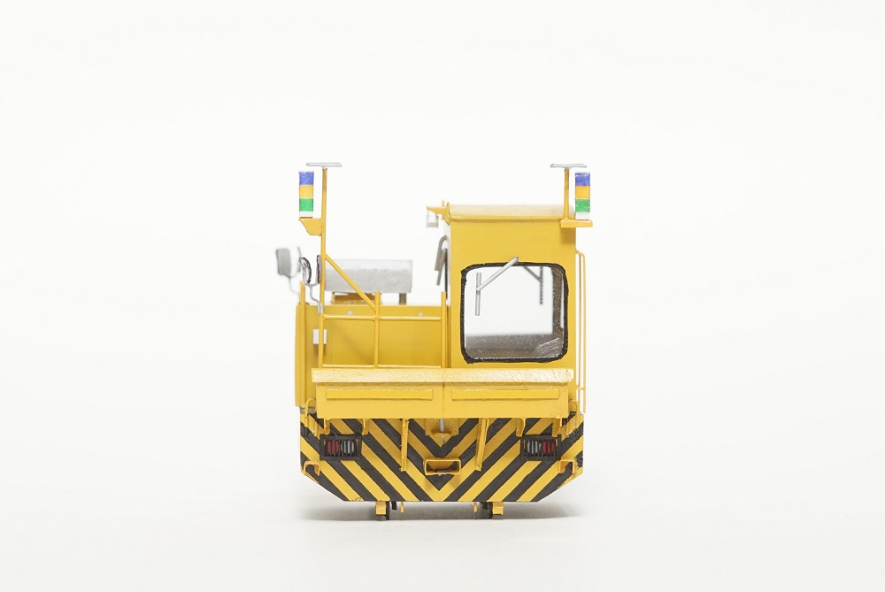 一見すると普通の大型アント。正面からでは分かりにくいのですが、前面に細長い箱状の機器が取り付けられている少し変わったアントです。 運転室の前に細長い箱が取り付けられているのが特徴。回転灯もあまり見かけない青が入った3色仕様。 反対側も普通の大型アントとは少し異なるデザイン。コンプレッサー(緑色の機械)を搭載するため運転室が1/3ほど狭くなっています。