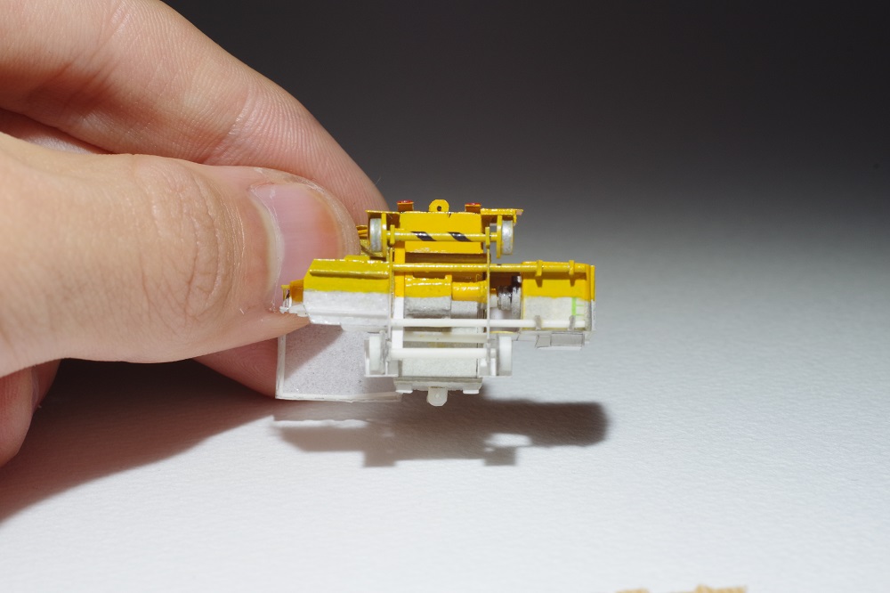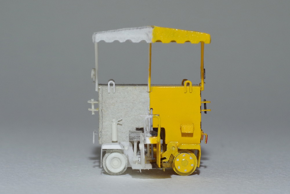 ANT23Wは22W型、30W型と似ているため、一見すると見分けが付きにくい。 このアントは普段、紙以外の材料で制作しているパーツ(細い丸棒等)も全て紙で制作しました。 折角紙で作るならと、車体の前後で半分に分けて片方は未塗装にしてあります。 幌屋根を支えている中央の丸棒は、半々の塗り分けが難しく苦労した。 車体裏も半々に塗装しています。