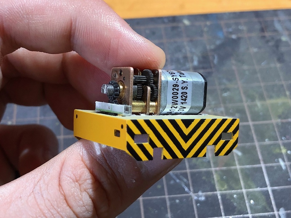 こちらは制作中の1枚。中央の開口部は通常のアント制作ではないもので、この部分にギアとモーターを配置しています。