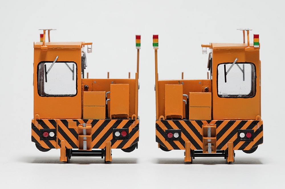 珍しく2台並んでの紹介となるこのアント。一見すると同じアントなのですが、合わせ鏡で見ているかのように機器類の配置が反転しています。 上の写真の反対側も同じように反転しています。何故このような事になっているのかは・・・ 細かく見ると反転しているパーツの他にも相違点が数カ所あるのですが、まるで間違い探しのようです。 ANT50DRT型は路上走行装置があり、線路と路面の両方で走行可能。さらにテレコン(無線操縦)仕様なので、無人運転も可能なハイテクアント。