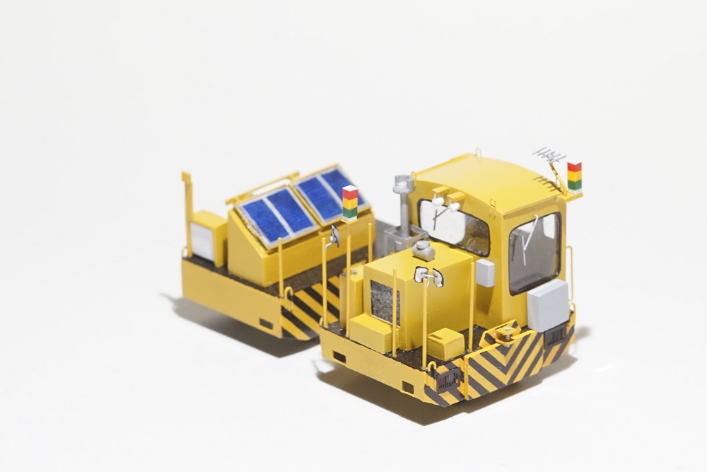手前のアントは通常の大型アントですが、後ろに様々な装置を搭載した機器車が連結されています。
