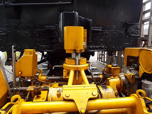 小さくて軽いアントは牽引すると車輪が空転する為、車両を少し持ち上げて重量を重くします。それにより粘着力が増加し牽引する構造になっています。