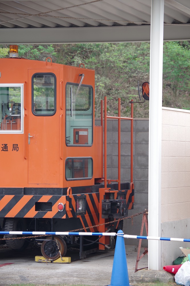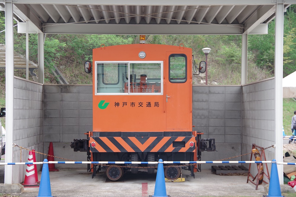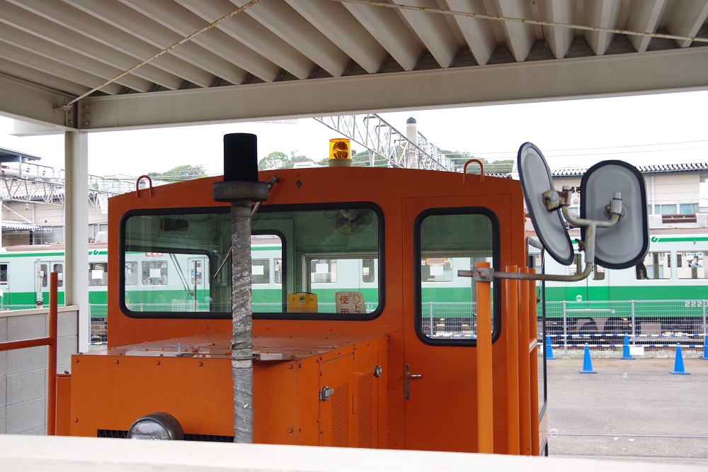 専用?の屋根付き車庫に収められている名谷車両基地のアント。レールからは外れた状態ですが、留置のため路面に車輪が下りています。 関西地区では比較的珍しいタイプのアントで、おそらく形式はANT40RR型。 模型を作る際に最も適した、少し離れた場所からの側面写真も撮影。 反対側があまり見えなかったのが惜しいところ・・・