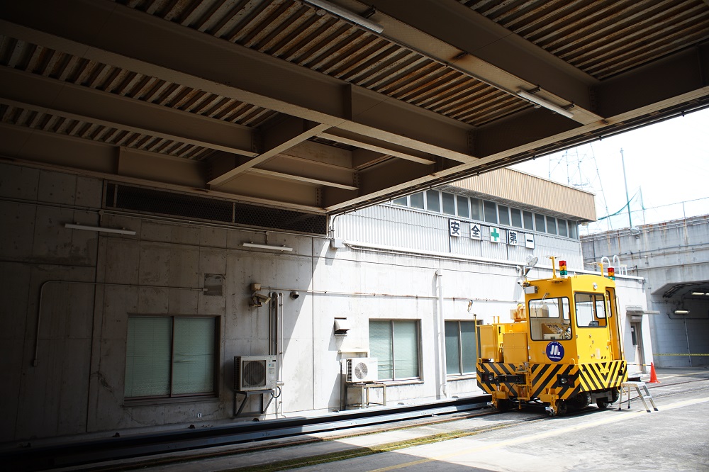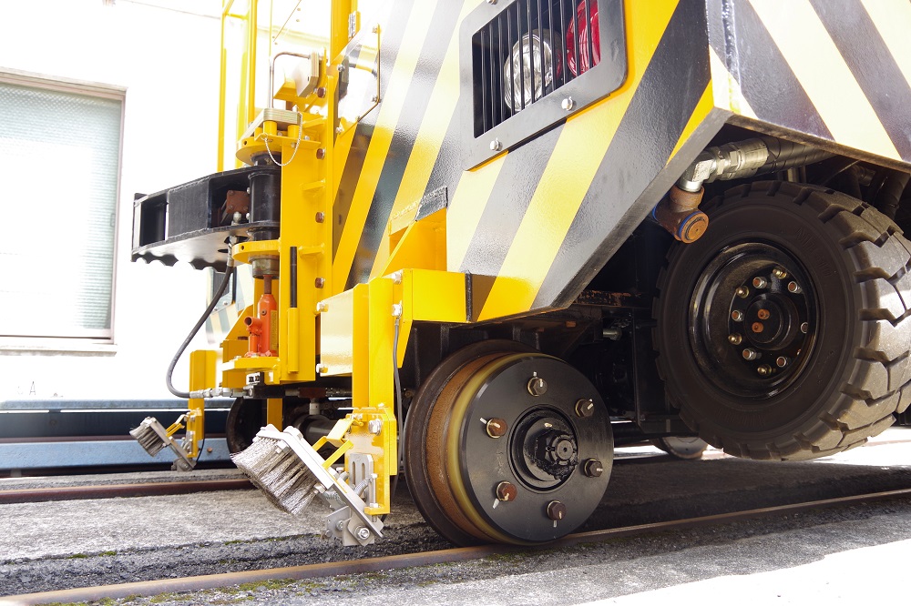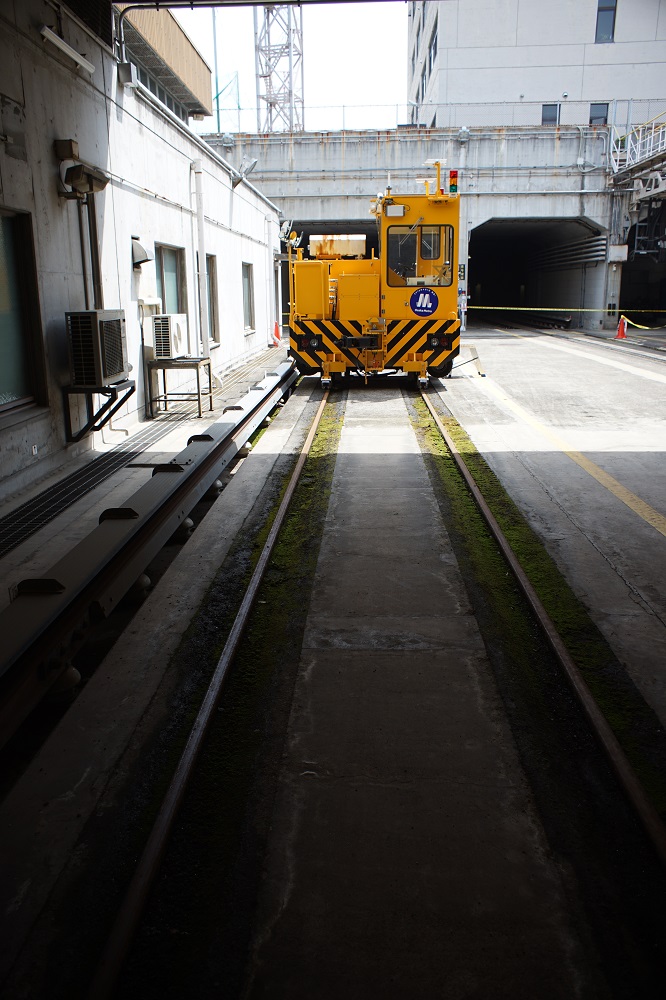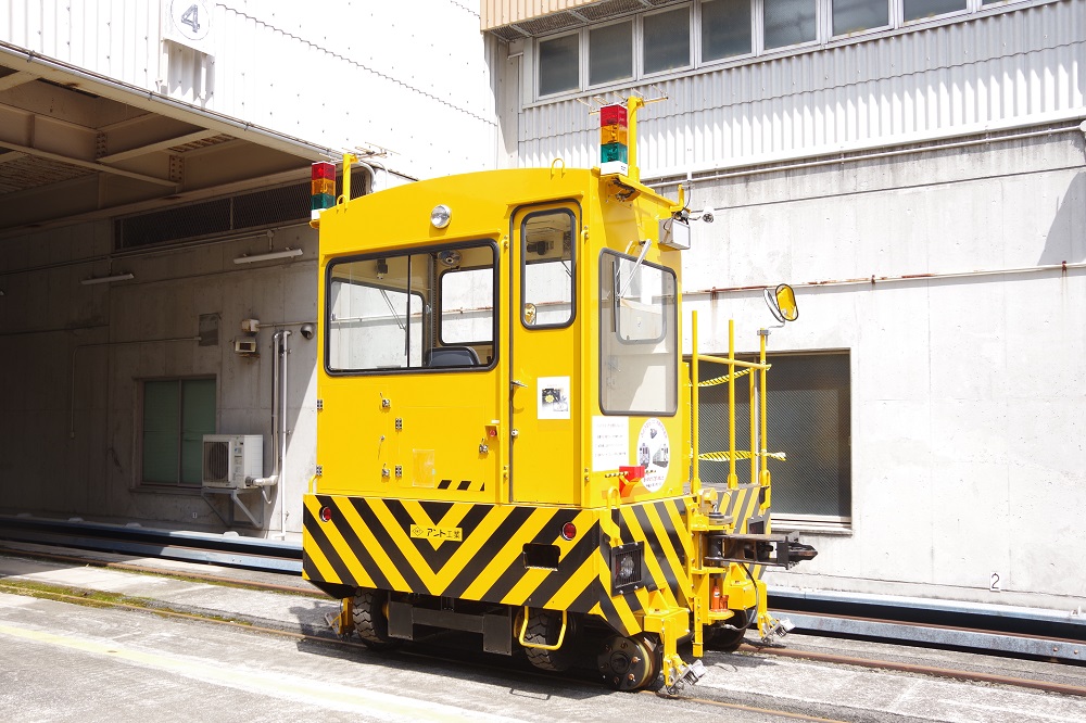 晴天の下、苔むした線路にたたずむアント。 関西地区では比較的珍しい大型アントです。 2016年製のANT50DB‐RT型で、従来のアントと比べて窓サッシ等が変更された最新型。 標準軌(線路幅1435mm)仕様の為、車輪が車体より少し飛びてているのが特徴。 このアントはオプションパーツが多く、モニター用のカメラが前後に装備されていました。 そのため無線アンテナも、カメラ用、遠隔運転用の2種を装備。