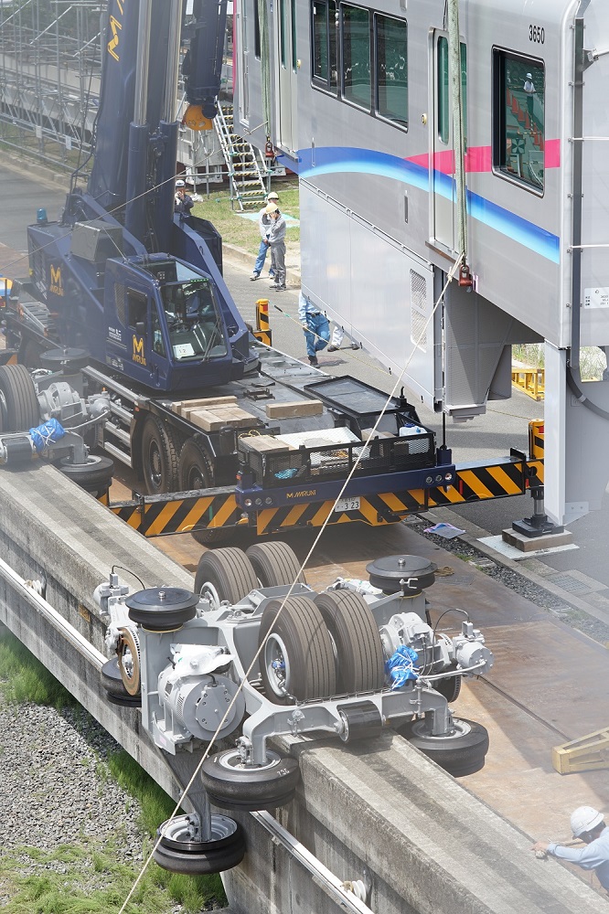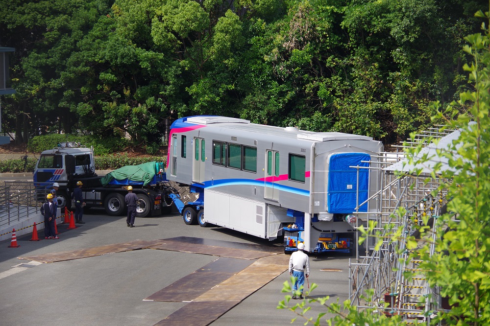 現地に着いた際は、ちょうど新車の搬入作業真っ最中。こちらも普段あまり目にする機会がない作業です