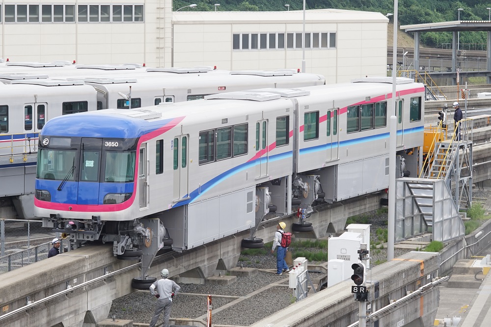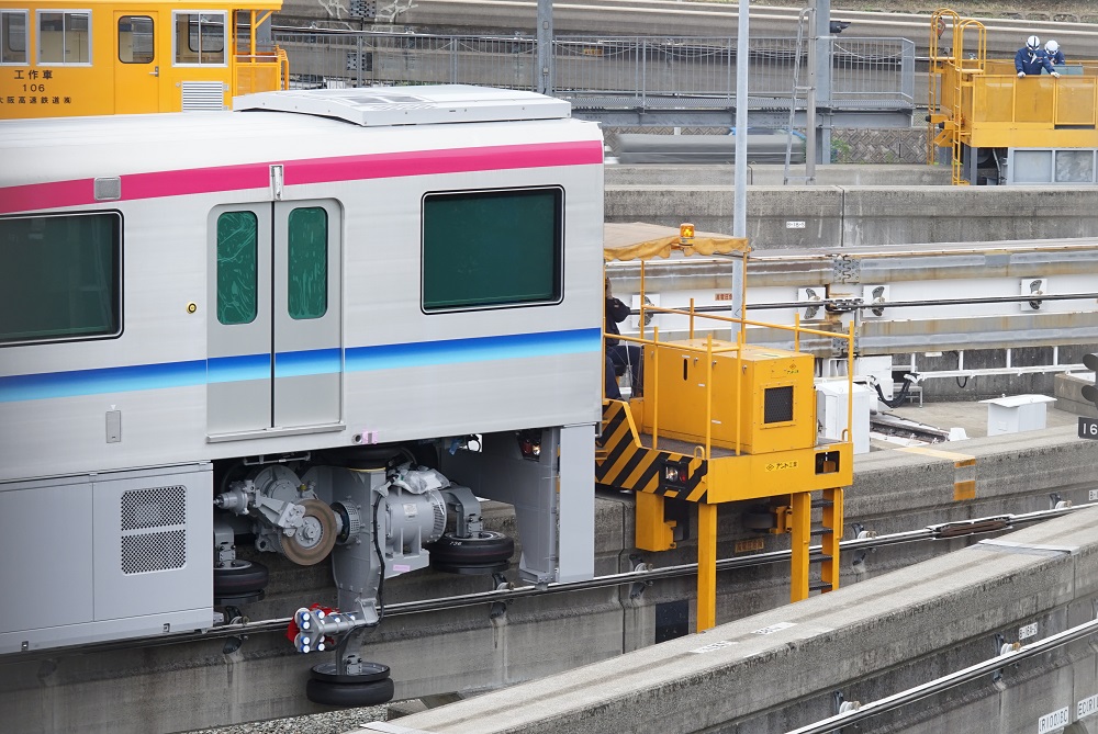 今回大阪モノレールの車両基地に搬入された新型車両3000系。発表によると2018年秋頃から営業運転を始めるそうです。